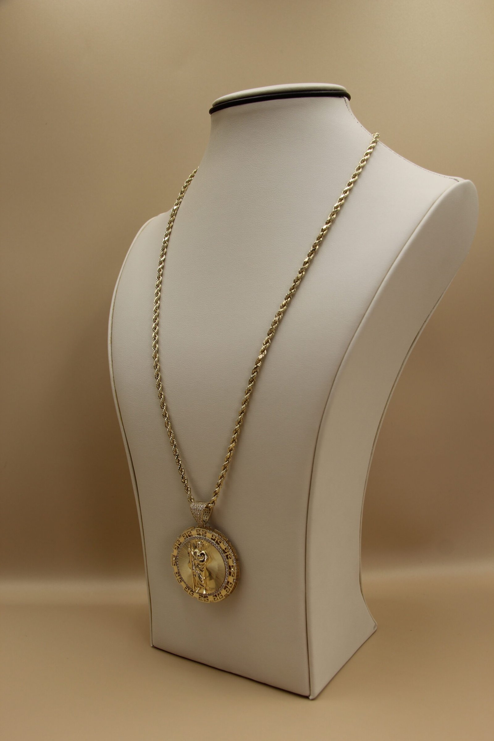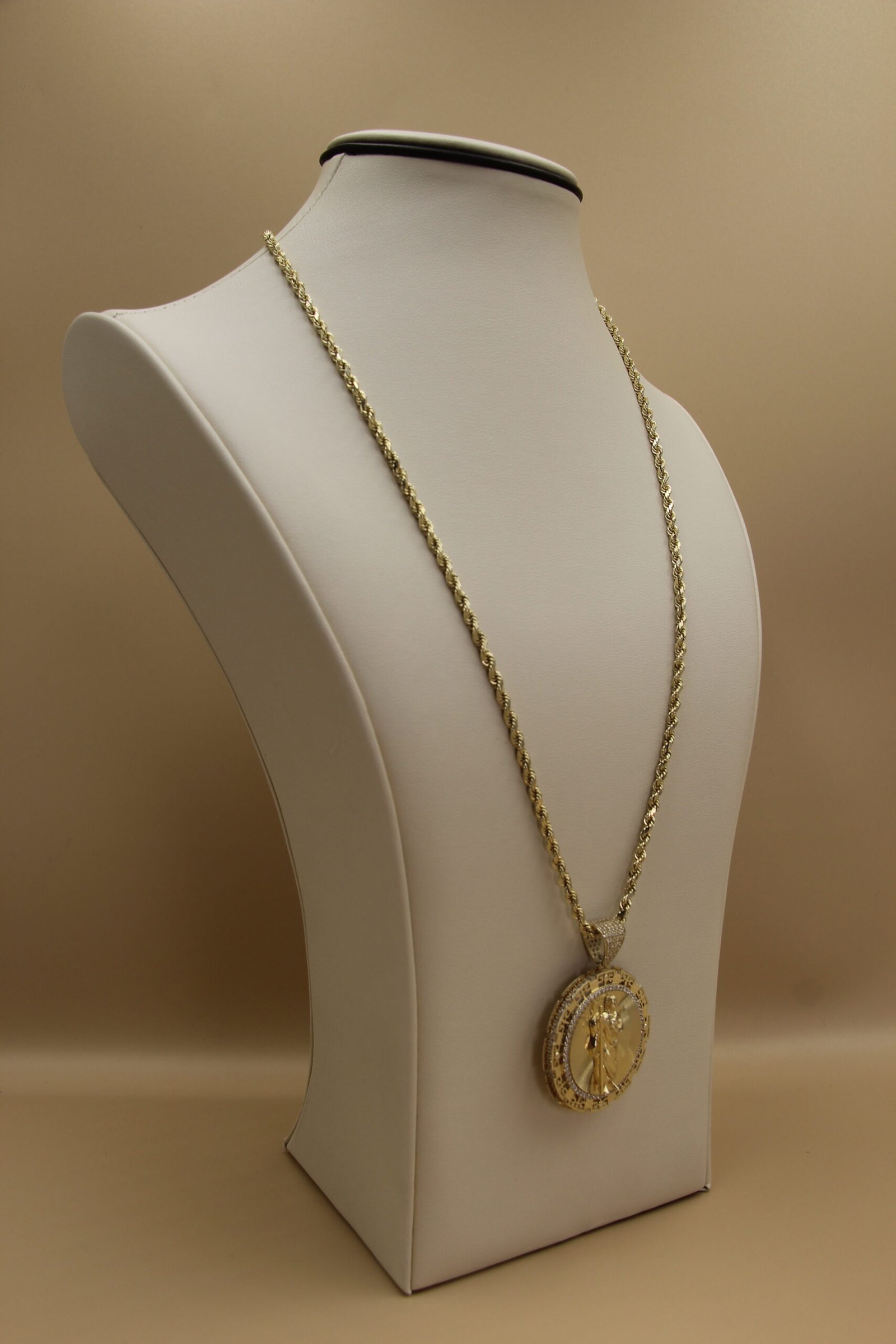Discover our exquisite Saint Jude Torso Chain, crafted in 10-karat gold. This charming accessory combines a classic and sophisticated design with a personal devotion to Saint Jude, known as the saint of lost causes. Its twist design provides a unique shine and movement, ideal for any occasion, whether for a special event or in your everyday life. Carry a symbol of hope and protection with you, while enhancing your style with this jewel that captures the essence of faith and elegance.