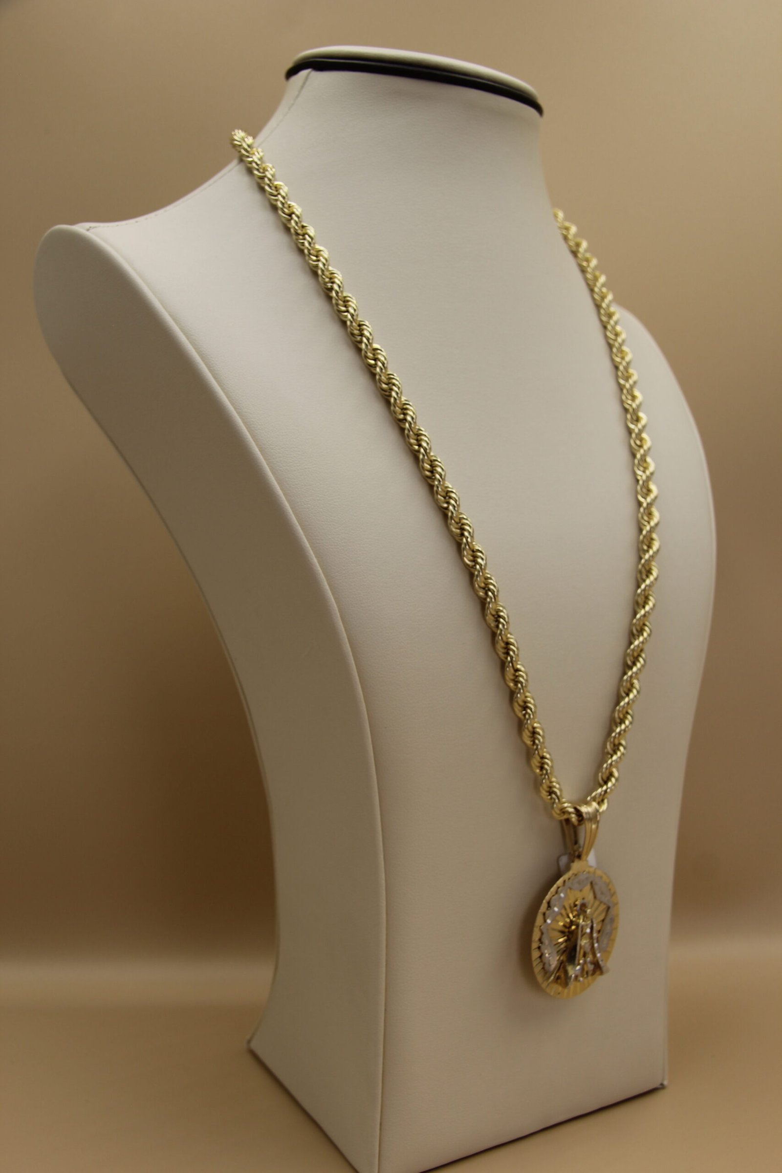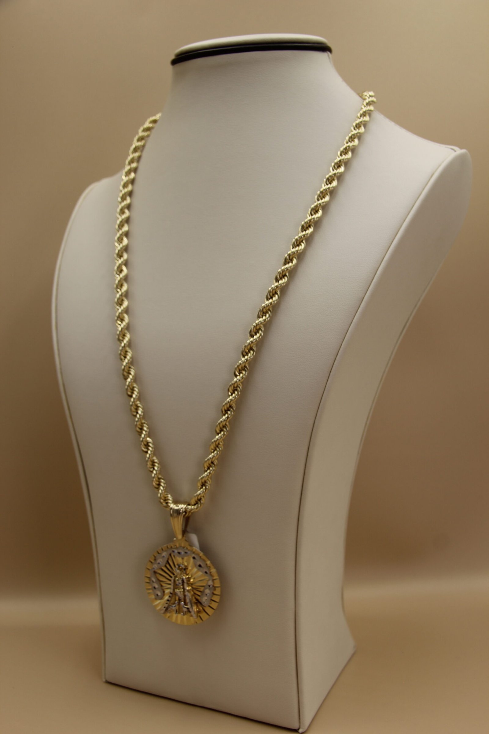 Discover the beauty and meaning of our Saint Lazarus Torsal Chain, crafted in 10-karat gold. This symbol of faith and protection is designed to accompany you every step of the way, blending style and spirituality. Its intricate craftsmanship and golden sheen make this chain a versatile accessory that can be worn for any occasion, whether daily or for special events. Treat yourself or a loved one to a piece of jewelry that not only beautifies but also represents a connection to tradition and devotion.
